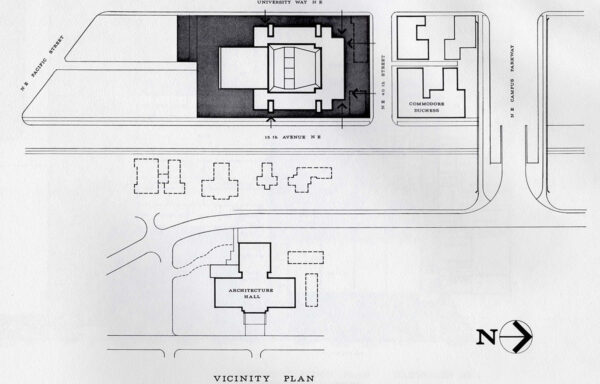 On army discharge, he returned to UW and went on to graduate with his Bachelor’s of Architecture in June 1948. While in school, he worked as a part-time typist for architect Paul Thiry before doing the specifications for Thiry’s UW Electrical Engineering Building. Before starting his Master’s of Architecture at Massachusetts Institute of Technology (MIT), Dan worked for Seattle architect Fred J. Rogers. Dan credited then MIT Dean William Wurster as the reason for applying to MIT. Graduating in June 1950, he returned to Seattle and was rehired by Paul Thiry, this time as a draftsman. As a draftsman for Thiry, Dan was responsible for designing and preparing documents for a number of prominent buildings including the original Seattle Museum of History and Industry, the Frye Museum, and the Regent’s Hill Dormitories at Washington State University.