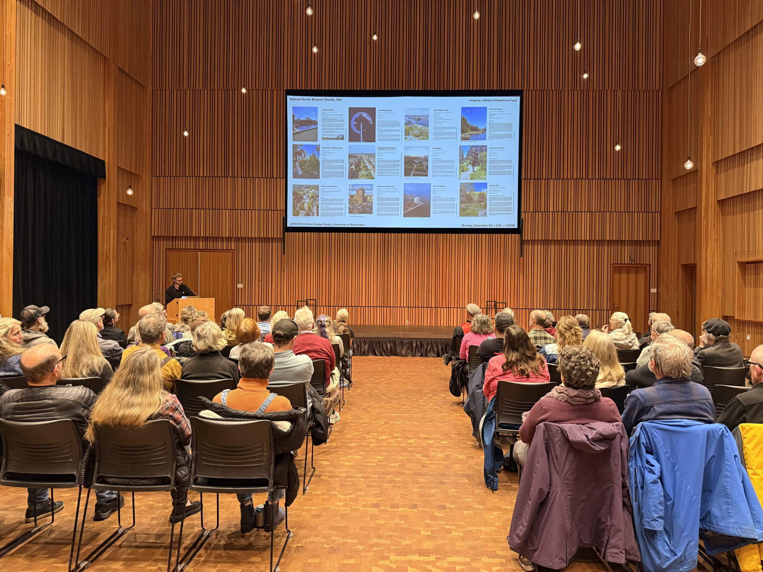 On Monday, December 8, the University of Washington College of Built Environments Scan Design Foundation Interdisciplinary Design Studio brought together students, faculty, and community members at the National Nordic Museum for a public review focused on the future of the Ballard waterfront. The event marked the conclusion of a quarter-long studio and a two-week early fall study abroad in Copenhagen as part of the Scan Design Foundation’s Landscape Architecture and Ecological Urbanism program.