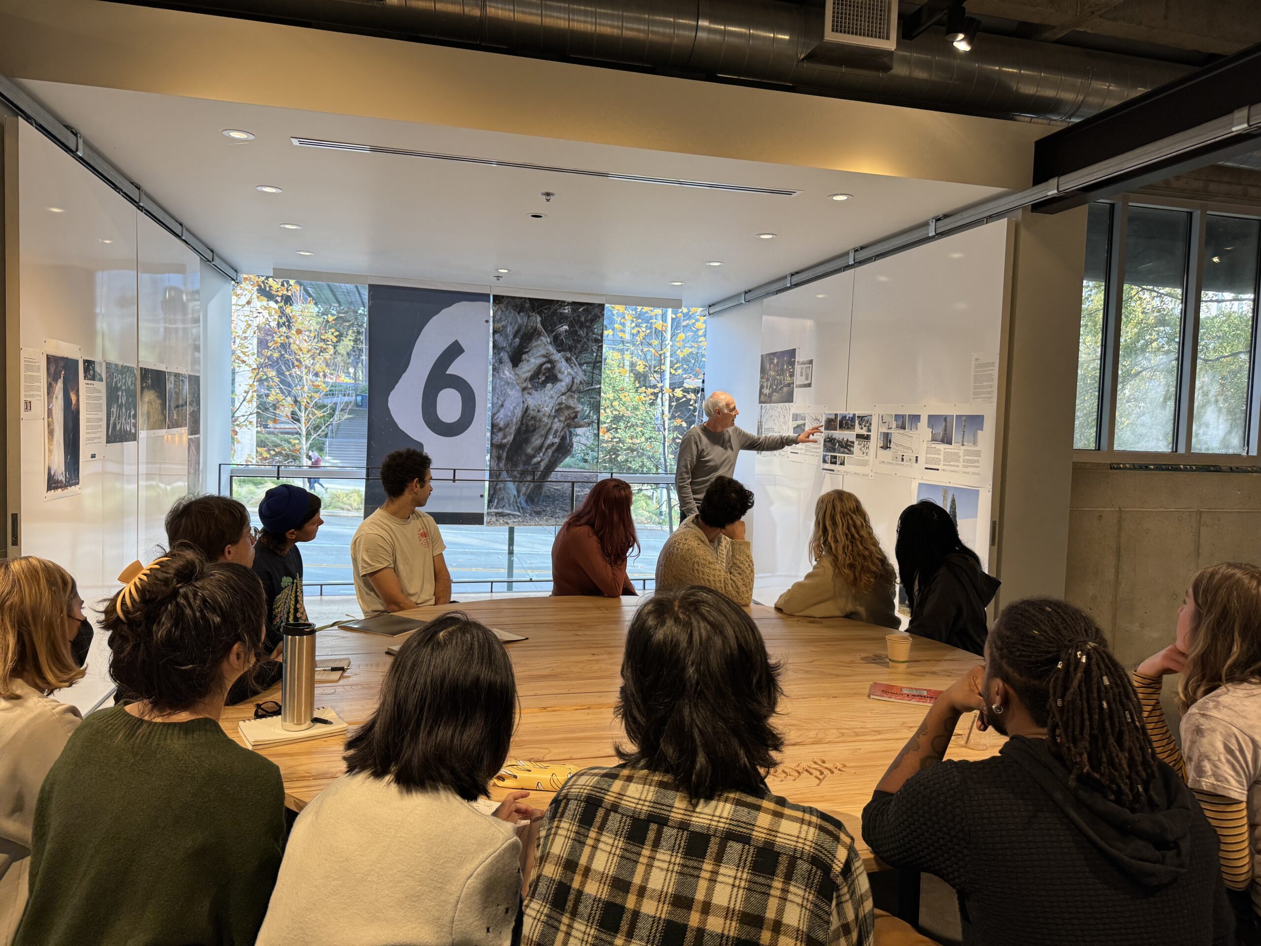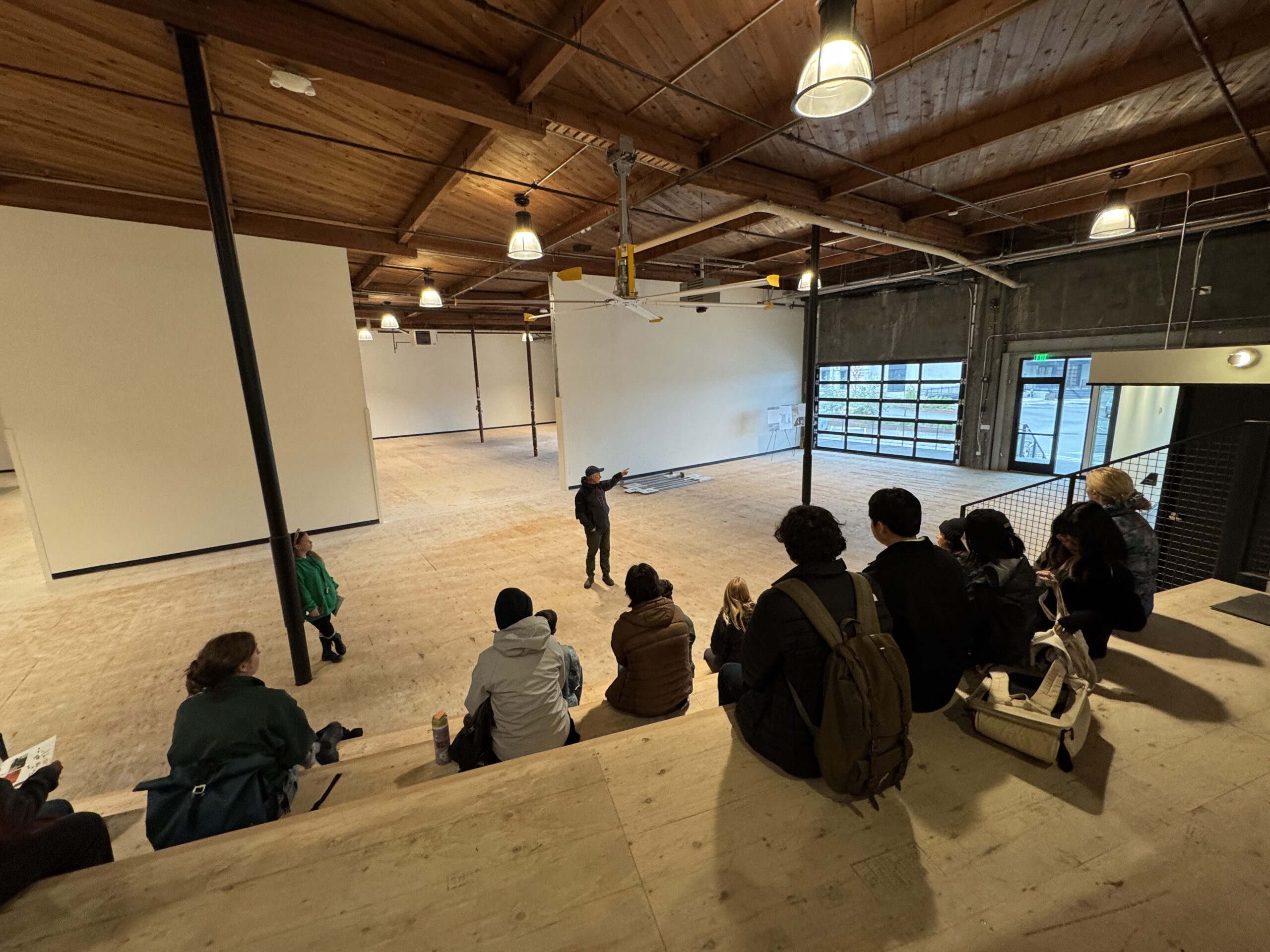 Students worked with partners across disciplines under the understanding that waterfronts function as ecological systems, cultural landscapes, and places of work and infrastructure. The long-term planning phase was grounded in cultural context and Indigenous knowledge. Stephanie James, cultural director for the Muckleshoot Indian Tribe, met with students at Cannonball Arts to discuss tribal history, contemporary cultural practice, and ongoing relationships to waterfront landscapes.