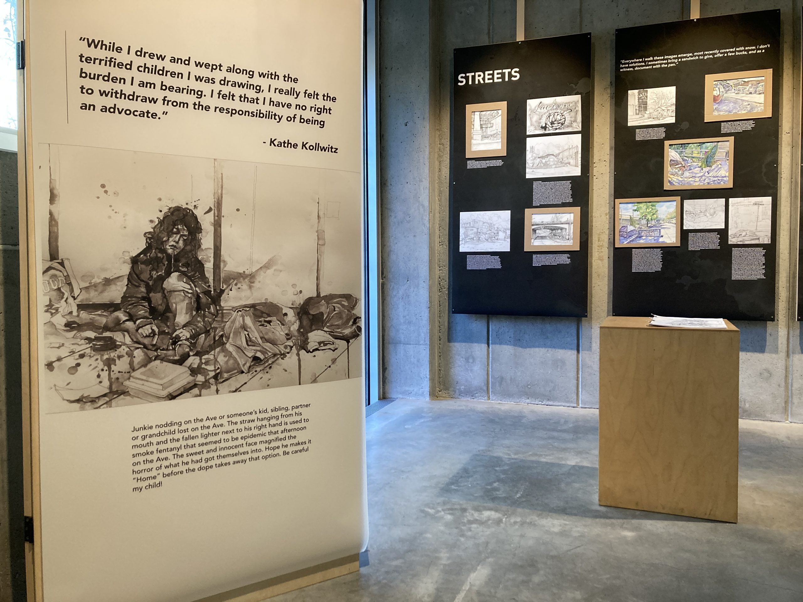 This exhibit featured the sketches and watercolor works of Daniel Winterbottom from his neighborhood wanderings and observations of pandemic life: “deserted streets, businesses closing overnight, and a dramatic increase of homeless encampments.” Read more about his work in this Landscape Architecture Magazine article.